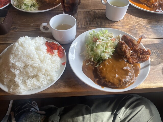 ハンバーグと唐揚げはとても美味しいです。