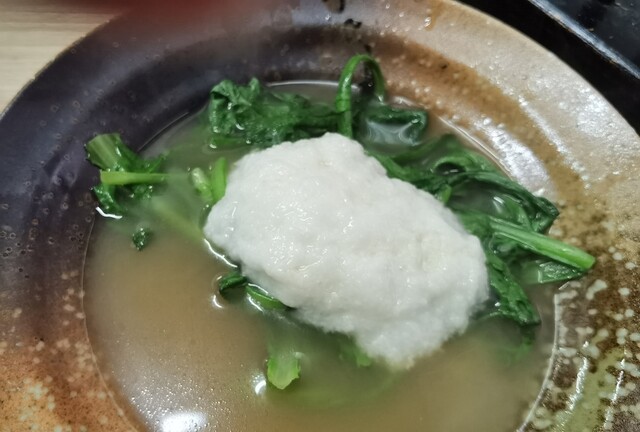 春菊 春菊のシャキシャキと風味に対して、とろろのもっちり感が対照的で、面白い。