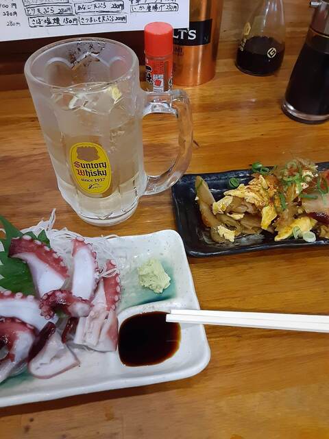 久しぶりに訪問。ハイボール+剣イカ+アジ造りを頂きました。