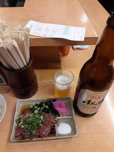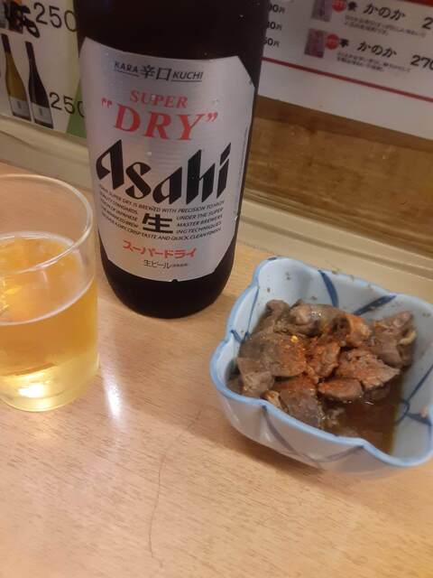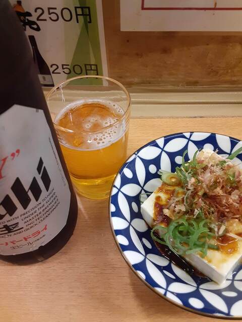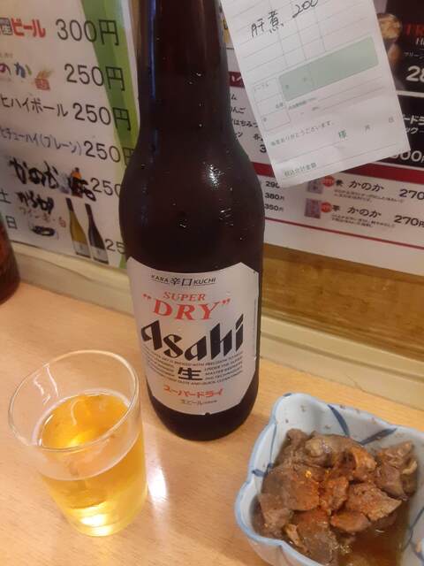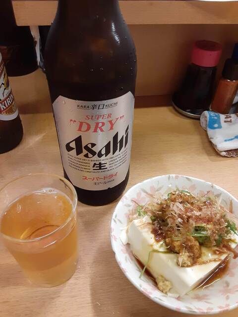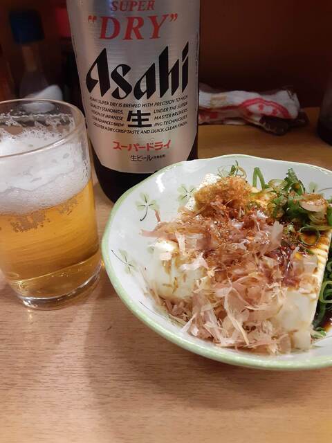 アサヒ大瓶に冷奴。TVを見ながら、他のお客さんの会話をバックミュージックに、まったりとした時間を過ごしました。生ビールをお代わり。830円也。