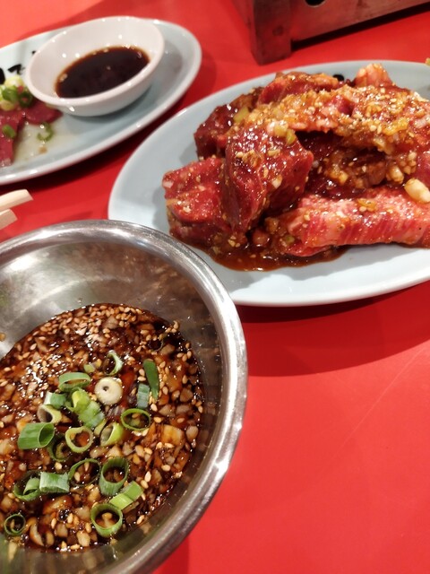 炭火焼きの香ばしい香りが食欲をそそる焼肉店にて食事を楽しみました。特に印象的だったのは、厚めにカットされた塩タン。噛むほどに旨味が口の中に広がり、しっかりとした塩加減が絶妙でした。続いていただいた赤身は、とても柔らかく、特製のタレと抜群の相性。炭火の香りとタレの深い味わいが肉本来の美味しさをさらに引き立て、満足感のある焼肉体験になりました。