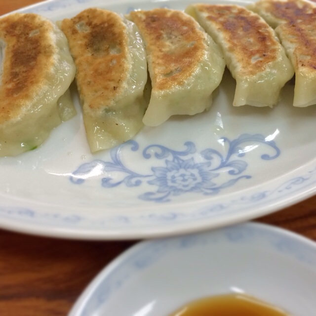 お待ちかねの餃子は5個で250円と大ぶりながら中身はジューシーで皮との相性も口に含んだ食感もなんとも言えず、1人で2皿は軽くいけそうです。