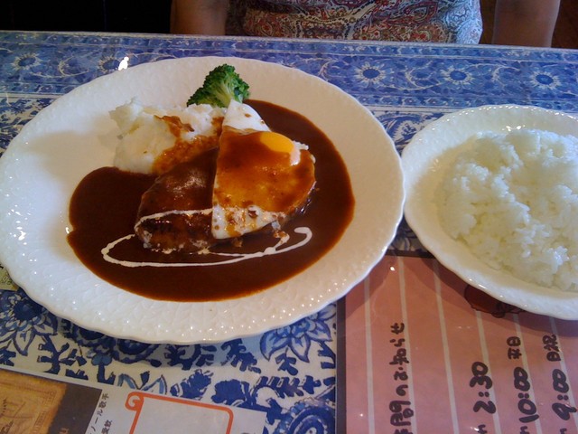 ハンバーグ、オムライスともデミグラソースの味が上品で生クリームがさらにマイルドな味わい。