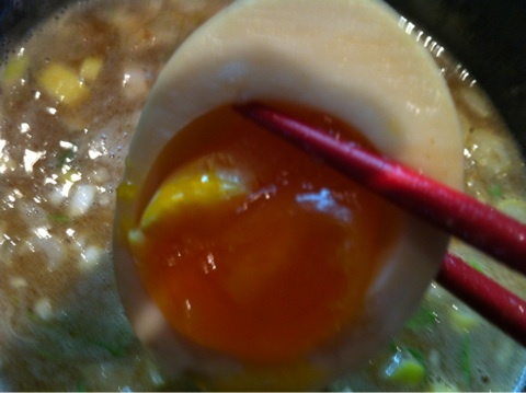 途中で食券を店員さんに渡し、香味油を柚子と魚介から、魚介を選びます。