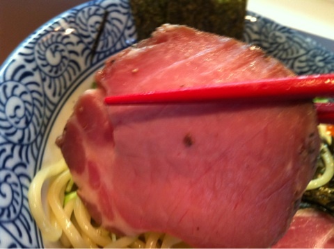 同じ麺屋こうじグループの麺屋一燈で見た、低温調理されたレアチャーシュー。
