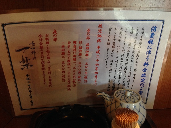 先日、食通の先生のご案内で、新橋にある喰切料理一楽へ。