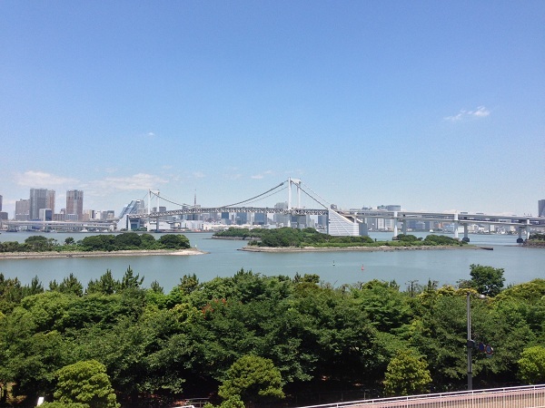 目の前には東京湾とレインボーブリッジ、東京タワーやスカイツリーも見える、まさに「ザ・お台場」という眺め。週末ランチにピッタリなロケーションです。