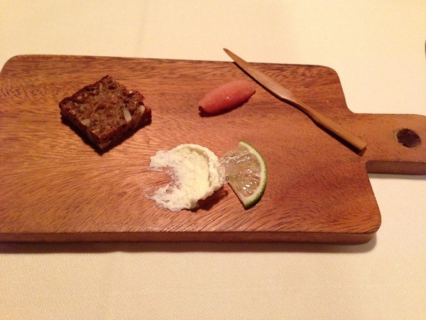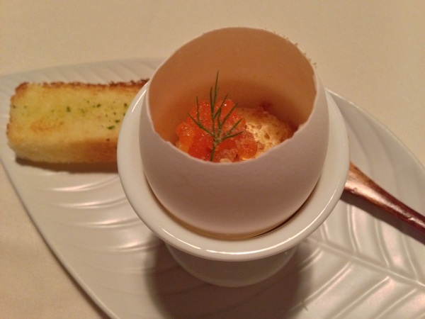 白トリュフの香る卵のムース ノルウェーサーモンのタルタル 青さ海苔のブリオッシュ