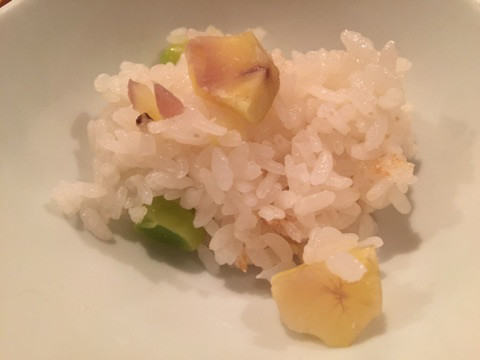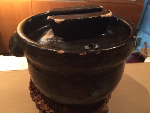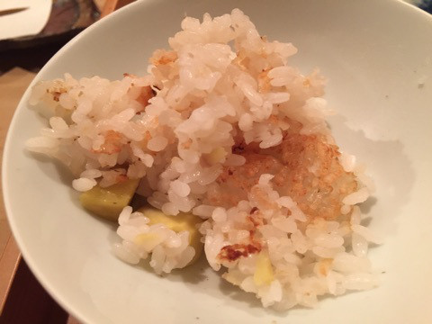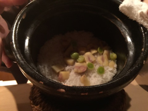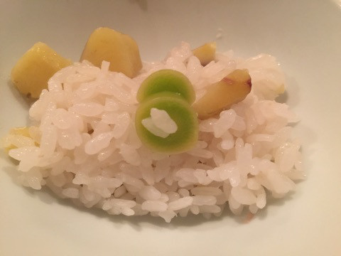 炊き込みご飯土鍋で1人前炊いた、栗と銀杏の炊き込みご飯。1人1合ぐらいあるそうなのですが、少しづつ入れてくれて、結局5回おかわりして全て美味しくいただきました。残った方には、おにぎりにして包んでくれていました。土鍋らしいおこげ釜がいいですね。