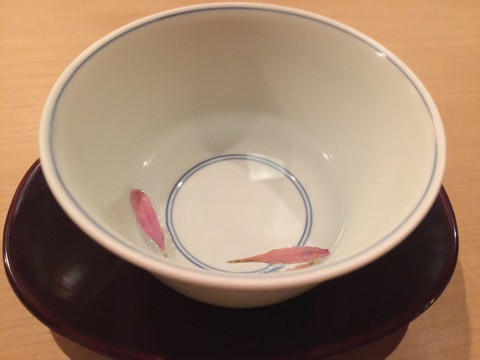 まずはおしぼりと、菊の花に白湯を注いで出してくれます。おしぼりは分厚く、いいおしぼりなのは触ればよく分かります。