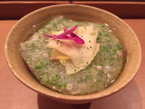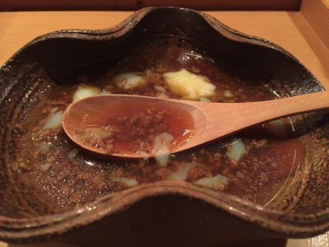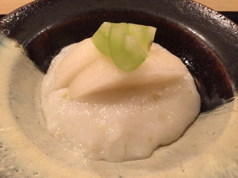 毛蟹真薯富山県魚津産の毛蟹を使ったしんじょに、スープも蟹仕立て。存在感のある富山県高岡産の椎茸も良いのですが、厚切りの蒸し鮑が2枚、しっかり入っていて、これがまた美味です。