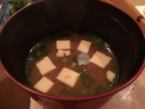 やや甘めのお味噌汁は、豆腐とネギがたっぷり。