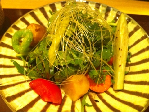 店主のお姉さんの畑(西東京市)と、千葉県の畑で今朝とれたばかりの野菜を使ったサラダ。