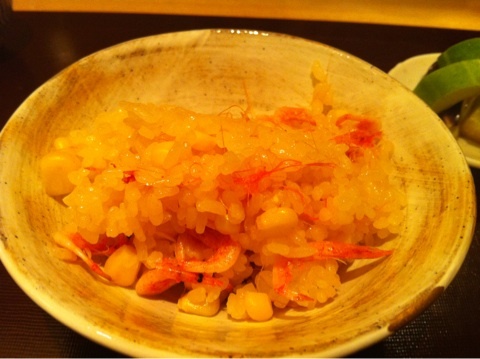 ご飯は、桜海老とコーンの炊き込みご飯。春から夏にかけて獲れる桜海老は、今がシーズンの最後だそうです。