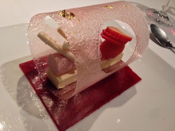 赤カブで出来たバラの華の舌には、フォアグラ。