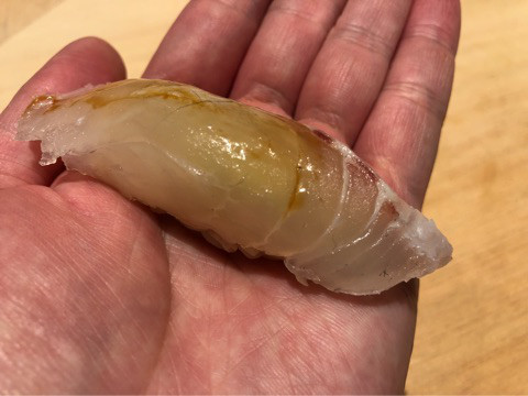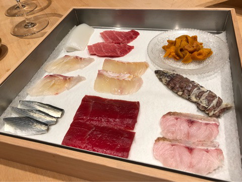 いよいよ握りをいただきます。その前に、今日のネタを見せてくれます。