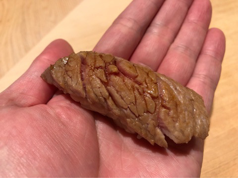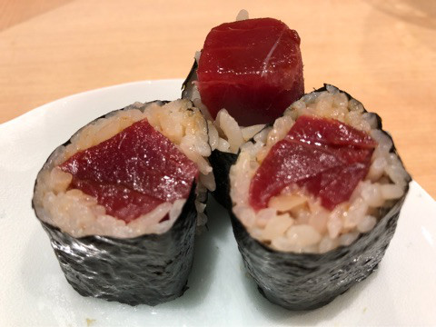 本日のマグロは9日前に大間で水揚げされたもの。イワシを食べて育った、大きな本鮪をしっかり楽しみます。