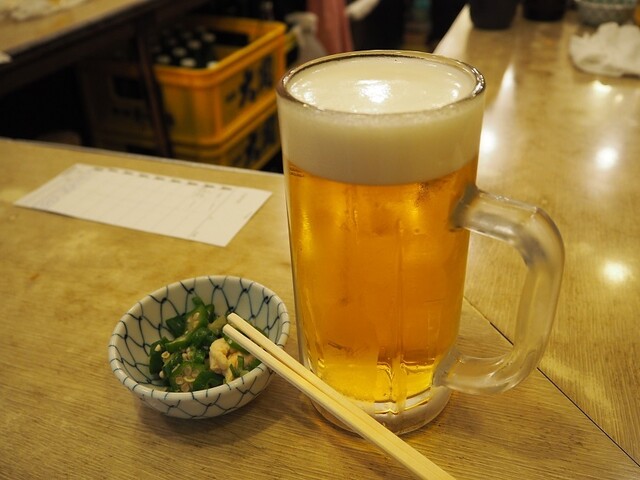 ここ「ふくろ」に来て酒を呑まず、飯だけ食っていくなんていう根性を持ち合わせない私は「モーニングset」と一緒に「生ビール」をオーダー