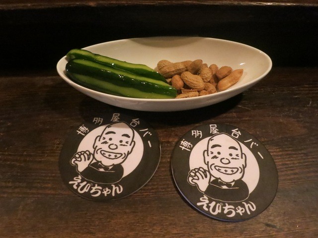 そして突出しはいつもの安定のきゅうり一本漬けと濡れピーナッツ。。これが樽ラムのロックに良く合います。