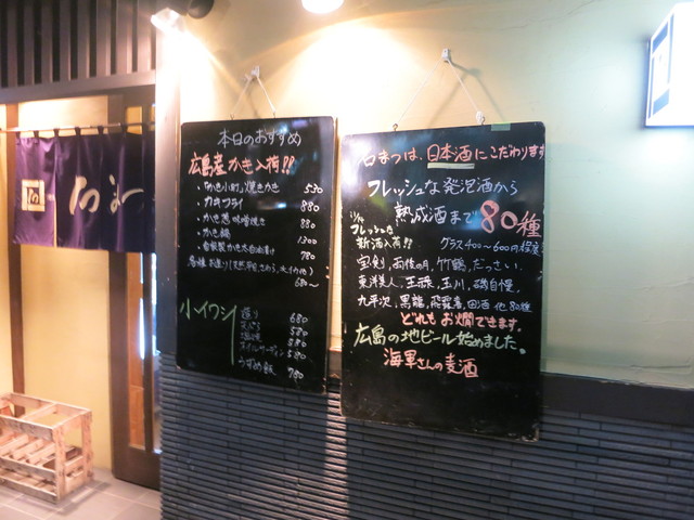 こちらでは日本酒を良く知るご主人に広島の日本酒を選んで頂けます。飲んだことの無い広島の地酒を肴と合わせるのが至福のときです。