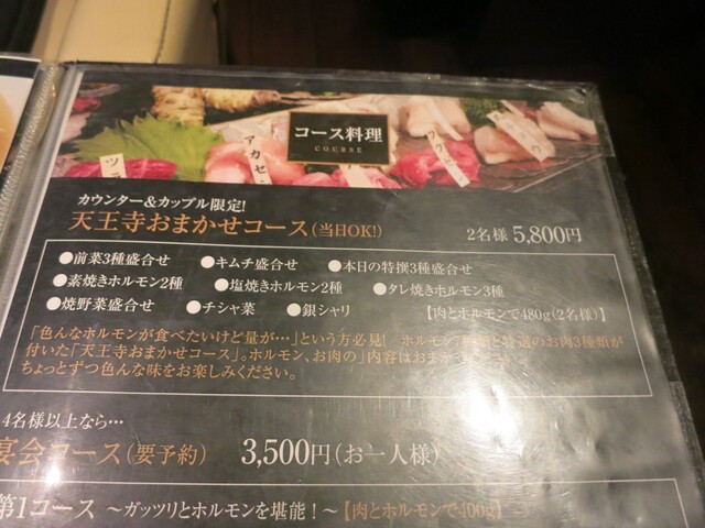 そこでセットになった天王寺おまかせコースという2人用メニューを注文です。これは予約無しで当日注文でもOKです。