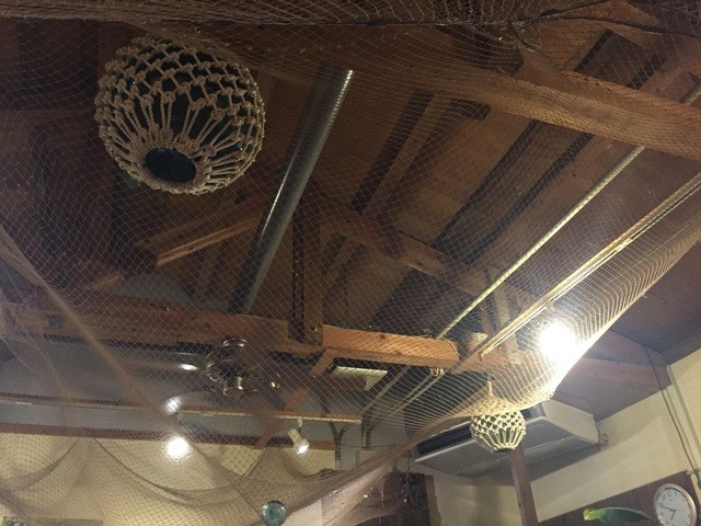 天井は網で覆われています。