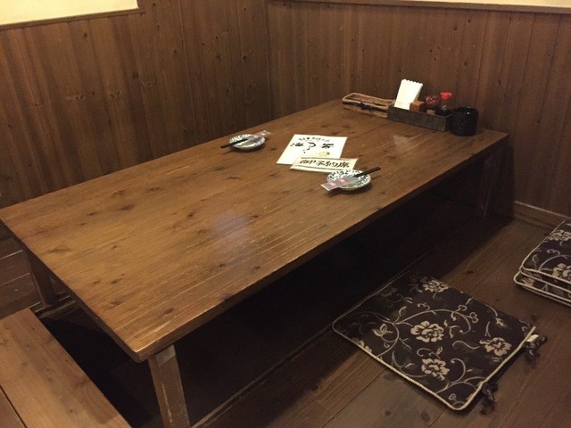 席は4人がけの小さなカウンタの他は掘りごたつ風のテーブルです。その席もゆったりとスペースがとってあります。