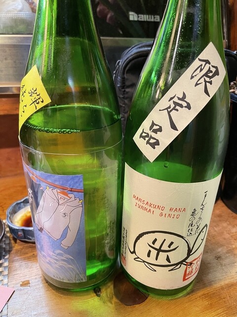 そしてこれこそが心躍るのは、日本酒の冷蔵庫になる30種類近い一升瓶から自分たちの好きなものを選んで、たくさんの種類を味わうことができます。ちなみに日本酒はご主人が選んだもの、そして古酒は長年寝かしたものも用意されています。これを自己申告で好きに飲みます。