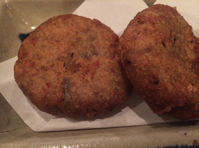 沖縄の田芋に豚肉、かまぼこ、しいたけを混ぜてかまぼこ状にして揚げたものです。