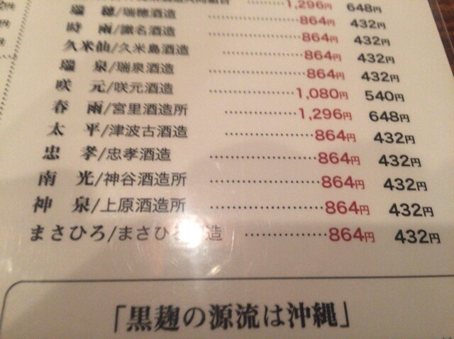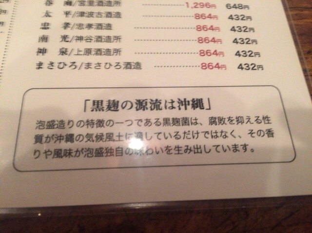泡盛の黒麹の風味がドゥル天のような料理に良く合います。