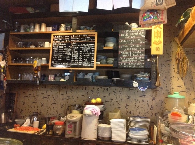 地元に根付き、大人数でも宴会できるので、地元の方々がいつも宴会をしています。カウンター席は10席くらい。ここが心地よいです。
