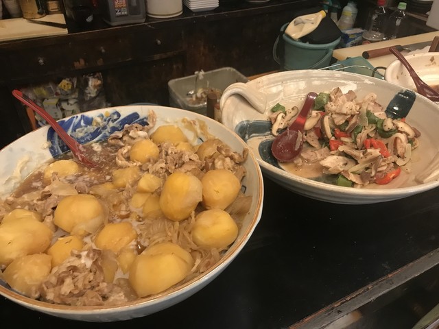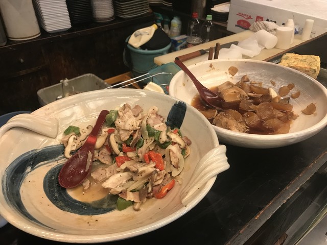 こちらの特徴はお通しをカウンターの大皿から選ぶところ。4つあるうちから1つ選びますが、2人で行くと2種類選べます。
