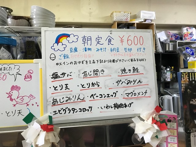 その他に、朝定食などもあり、こちらもおかず2品と焼魚などがつく超お得なメニューです。