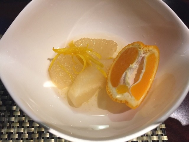 こちらも郷土料理の凍みだいこんをみかんで煮た、みかんの味とだいこんの干した味がマッチする郷土料理の創作料理です。