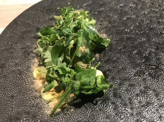 「レストランの近くの川をはさんだ向こう側の山からとれた山野草」