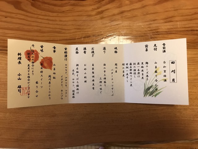 これは「春菜懐石」というのですが、全編ここの近所の山菜と摘み草、「岩船港」の新鮮な魚、関川村の「朝日豚」、「岩船産コシヒカリ」などなど、とにかく地産地消にこだわっています。