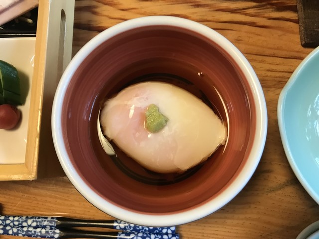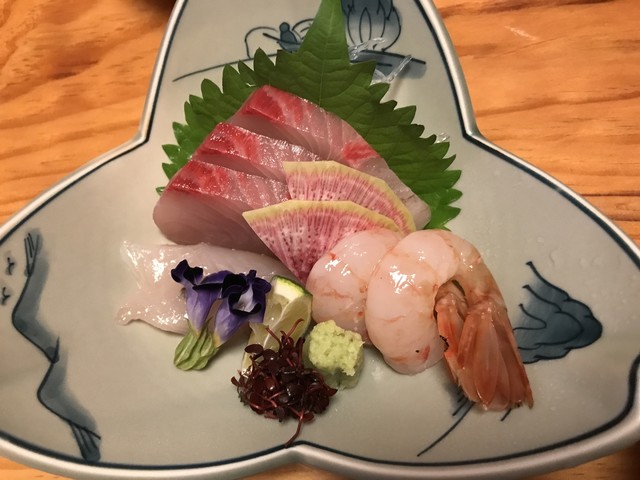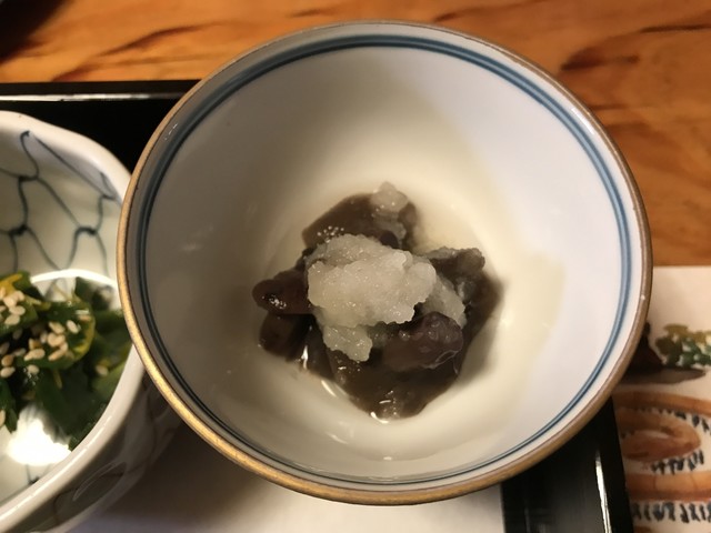 魚のお刺身や豚肉も美味しいのですが、こちらのお刺身には鮭で造った魚醤で頂くことができます。この近くの村上市は鮭の町であり、そこの名物がこの鮭魚醤ですが、これが実に良いアクセントになっています。