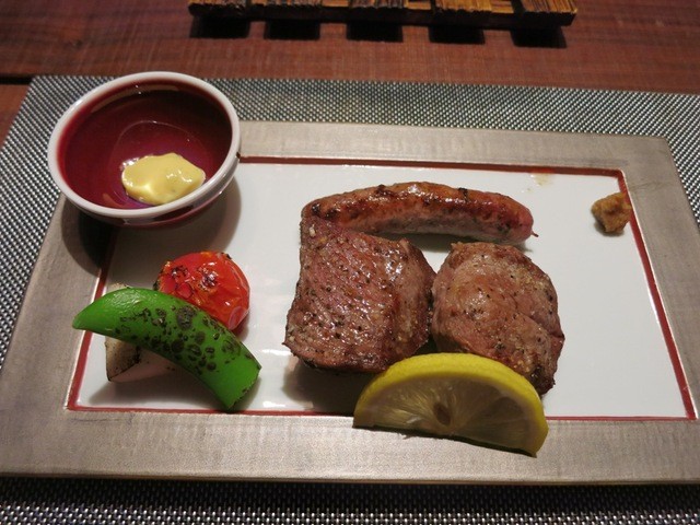 食事のメインは専用牧場で育てている羊のサフォーク種です。サフォークは北海道の焼尻島産が有名ですが、全く臭みの無い羊です。サフォークは熱々の溶岩を使った岩石焼きで頂けます。