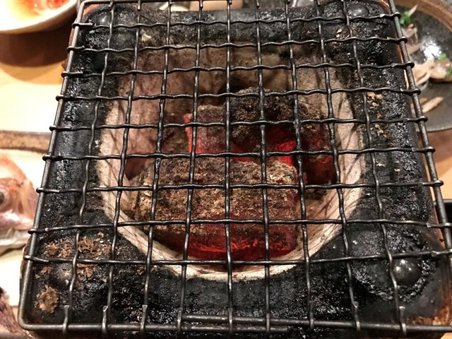 そしてメイン一つは炭火焼です。テーブルの上のコンロで炭火で焼きます。