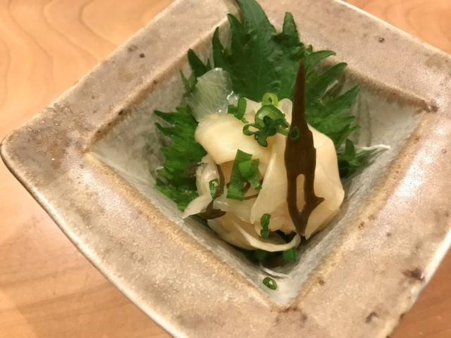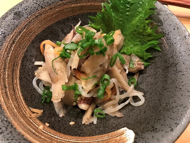 まずはおばんざいですが、海鮮きんぴら、たこのやわらか煮、甘えび南蛮漬など実に魅力的。いずれもお魚のレベルが違います。そして富山と言えばバイ貝煮です。ここのは実に大きくて立派です。味も新鮮で実にうまい。