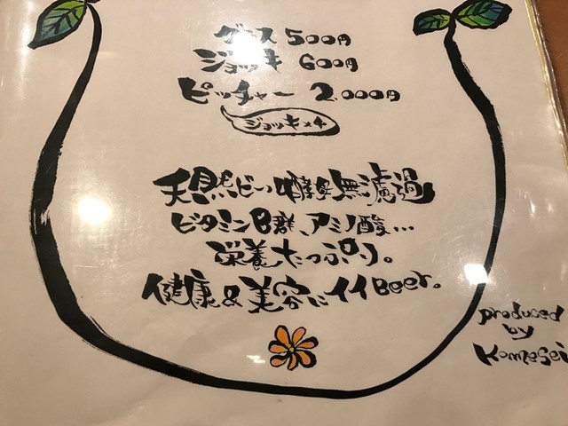 まずは生ビールから。生ビールも自家製です。これが無濾過で濃くてフルーティでおいしいです。ビールまで自家製というところに新しいものを生み出そうとするこだわりを感じます。この生ビールは実に良いです。