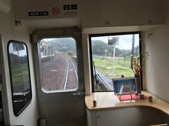 今日は2人で1号車のカウンタ席を予約しました。ここが正面に海が見える場所。