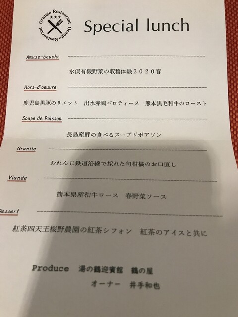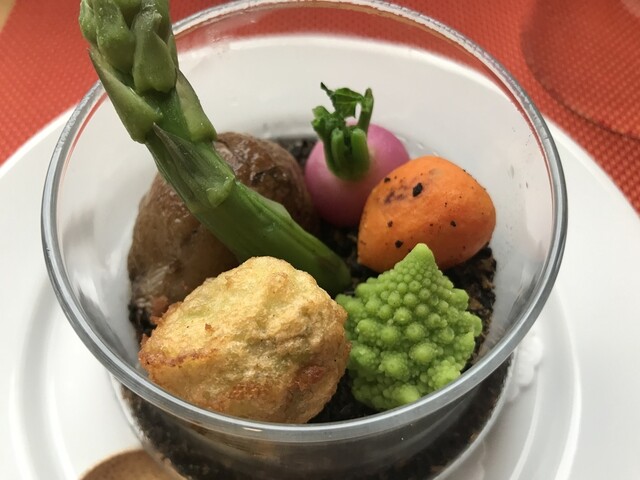 もちろん地産地消で沿線の素材が使われています。メインもデザートも最高のお味です。