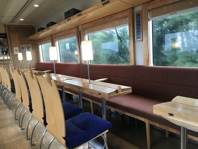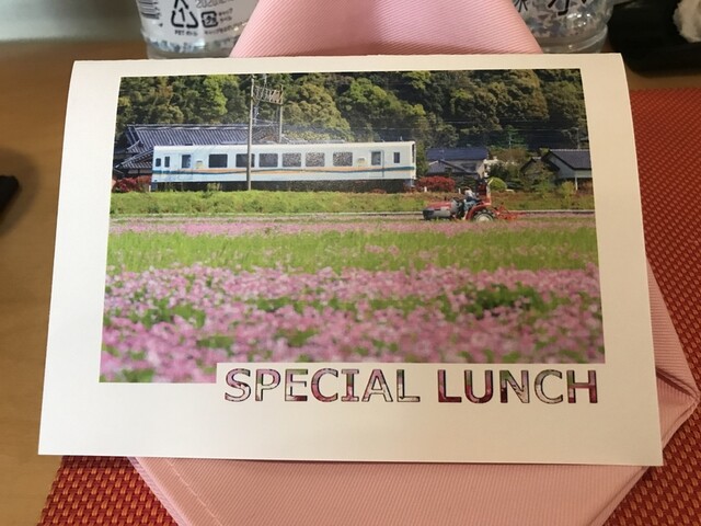朝の1便目はモーニング、昼の2便目はスペシャルランチ、午後の3便目は夏はスウィーツ列車、冬はディナー、夕方の4便目は夏限定のディナーです。