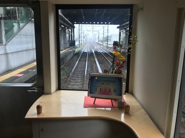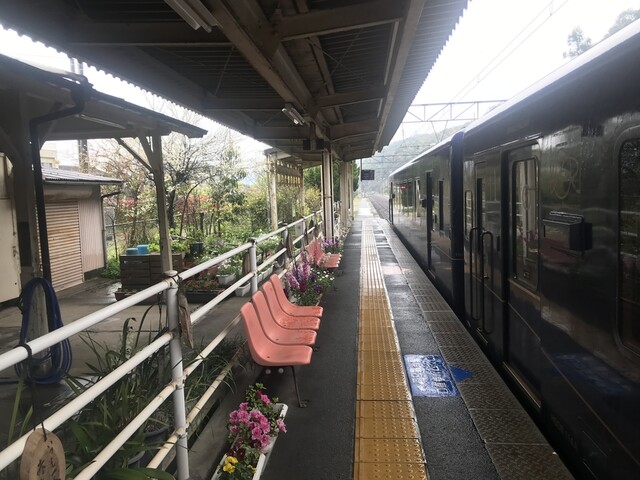 新八代から4時間乗車し、その間に景色を見ながら食事をしてお酒を飲み、時々止まる駅で買い物をしてお土産をもらい、と盛りだくさん企画です。