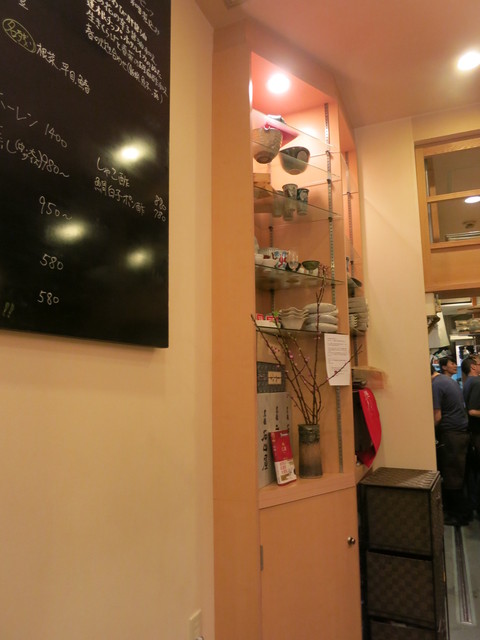 長くて曲がったカウンタの中はどこに座っても落ち着けます。