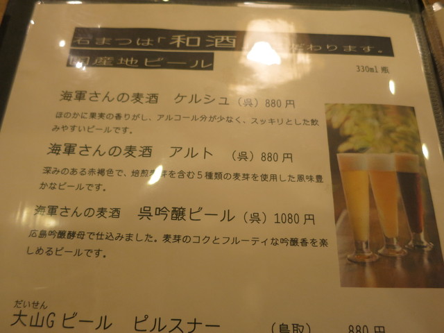 ビールは呉海軍ビールがあります。瀬戸内モヒートもネーミングが良いし爽やかで美味しいですね。