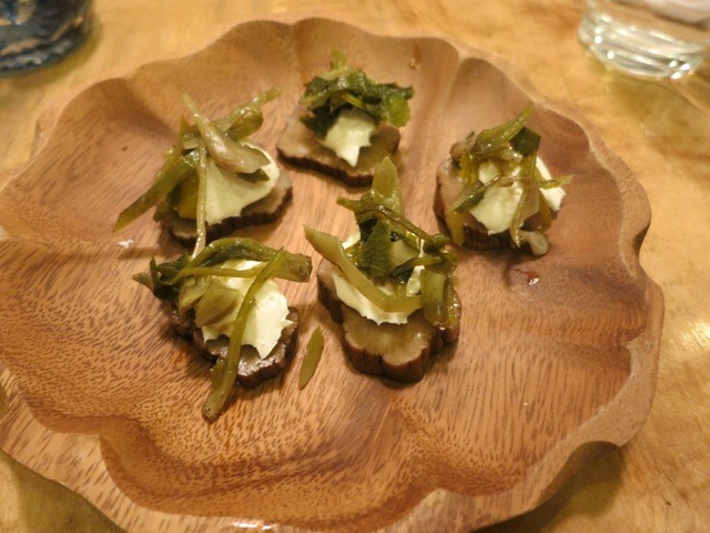 いぶりがっこにチーズと漬物菜をのせたものも、とても日本酒に合います。広島の甘みのある日本酒はこういう塩味の強い料理に合います。でびらとか小いわしなど瀬戸内お魚たちもとても良いお味です。