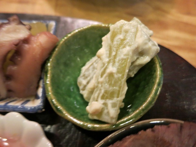 7つの肴どれも秀逸な味です。中でも黄身が美味しいです。日本酒飲みの気持ちがわかっている感じ。味もそうですが、こういう7つを1つのお皿に盛って見た目も日本酒気分を盛り上げる心遣いが好きです。