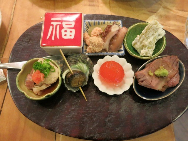 まずお料理ですが、7つの肴が1つのお皿に乗ってくるのがイチオシです。